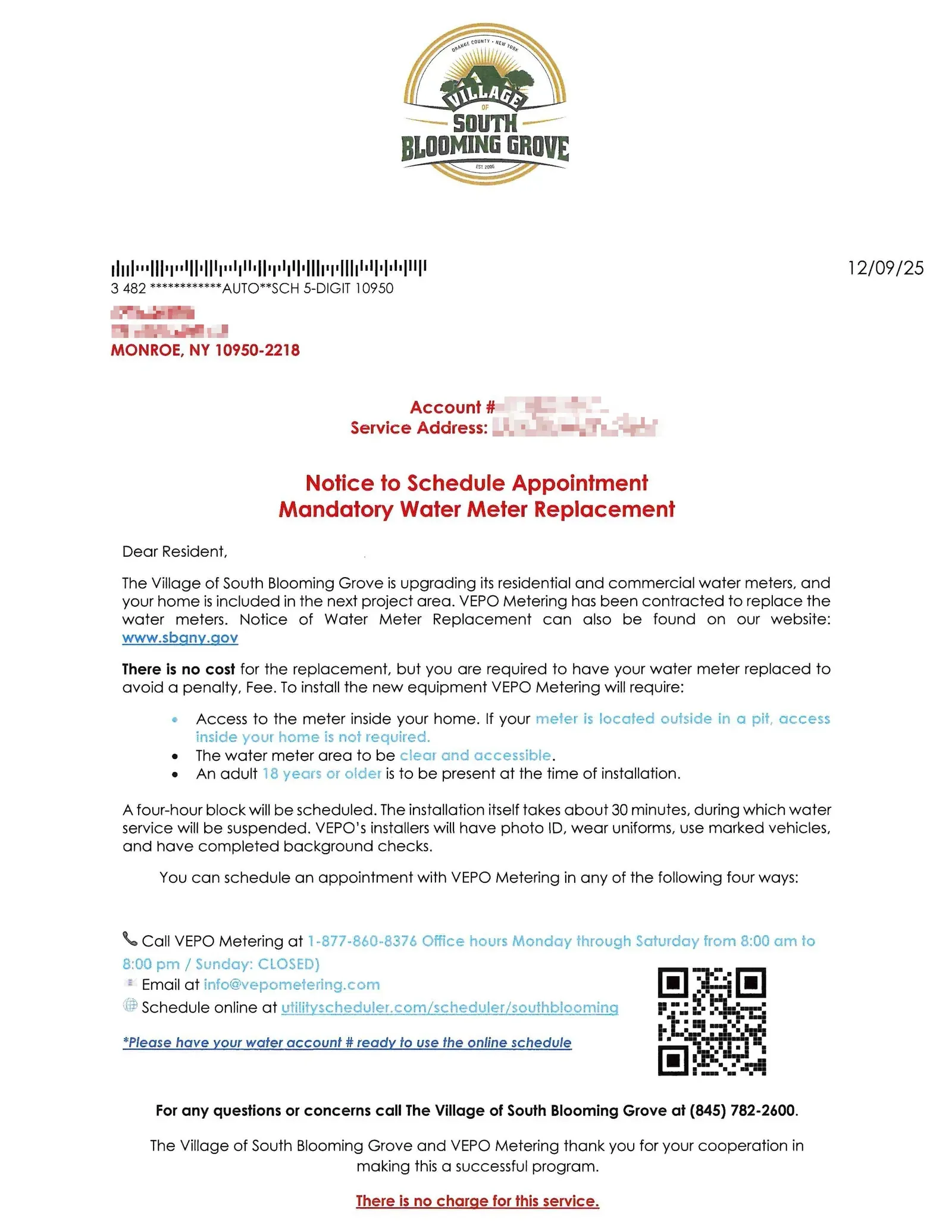 יעדער אדרעס האט באקומען א בריוו מיט פונקטליכע אנווייזונגען וויאזוי צו סקעזשועלן דעם אפוינטמענט, אויב האט איר נישט באקומען דעם בריוו, ביטע רופט אריין אין ווילעדזש אויף 845.782.2600.